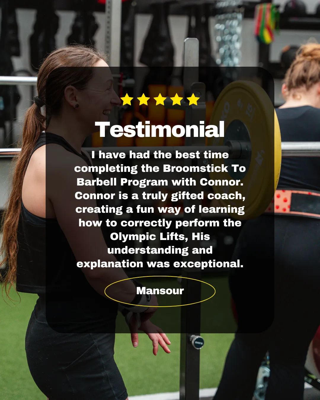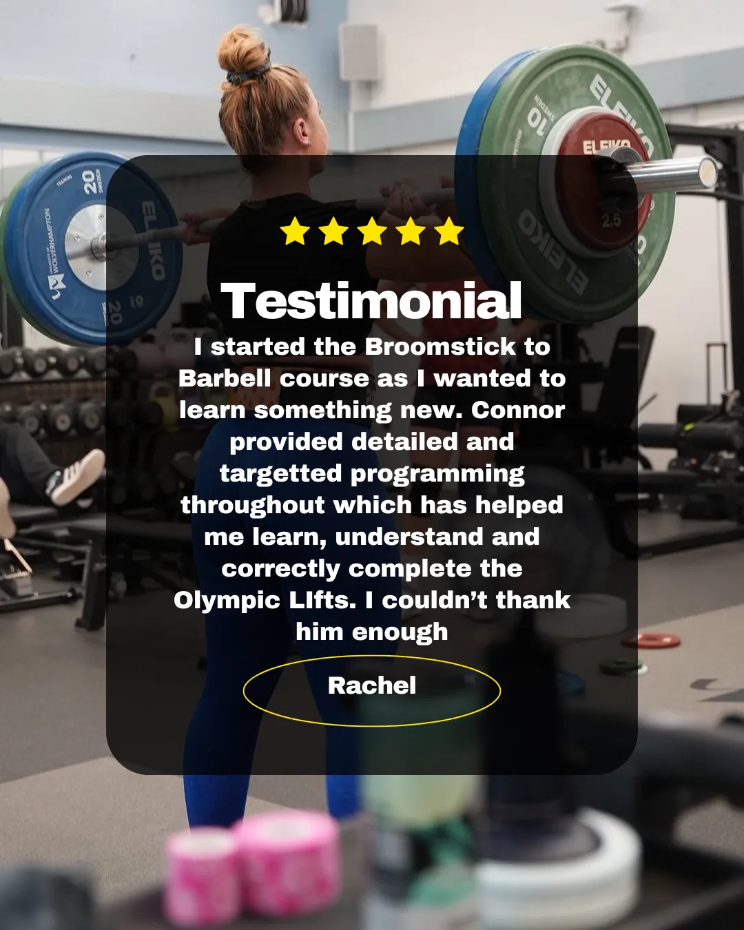 You’ll learn the snatch, clean, and split jerk step by step, building from broomstick to barbell with perfect form. No bad habits of poor lifting technique, gold standard coaching from a certified weightlifting coach, with over 15 years experience coaching over a thousand athletes master the Olympic lIfts